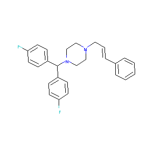Flufenal; Flunarizin; Flunarizina; Flunarizinum; Fluvert; Issium; Sibelium; Vertix; Zinasen; Apo-flunarizine capsules; Flunarizina [INN-Spanish]; Flunarizine (INN); Flunarizine [INN:BAN]; Flunarizinum [INN-Latin]; Novo-Flunarizine; R-14950; Sibelium (TN); (E)-1-(Bis(4-fluorophenyl)methyl)-4-(3-phenyl-2-propenyl)piperazine; (E)-1-[Bis-(p-fluorophenyl)methyl]-4-cinnamylpiperazine; 1-(Bis(4-fluorophenyl)methyl)-4-cinnamylpiperazine; 1-[bis(4-fluorophenyl)methyl]-4-(3-phenylprop-2-en-1-yl)piperazine; 1-[bis(4-fluorophenyl)methyl]-4-[(E)-3-phenylprop-2-enyl]piperazine