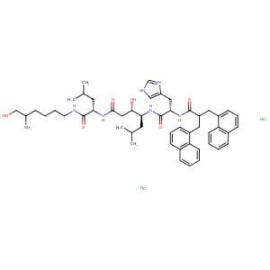 C(=O)(N[C@H]([C@H](CC(=O)N[C@H](C(=O)NCCCCC(N)CO)CC(C)C<br />)O)CC(C)C)[C@@H](NC(=O)C(Cc1c2c(ccc1)cccc2)Cc1c2c(ccc1)<br />cccc2)Cc1nc[nH]c1.Cl.Cl