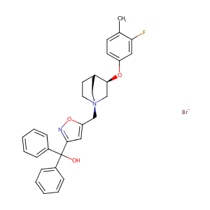 C1[N@+]2(C[C@@H]([C@@H](C1)CC2)Oc1ccc(c(c1)F)C)Cc1cc(no<br />1)C(O)(c1ccccc1)c1ccccc1.[Br-]