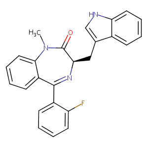 InChI=1S/C25H20FN3O/c1-29-23-13-7-4-10-19(23)24(18-9-2-5-11-20(18)26)28-22(25(29)30)14-16-15-27-21-12-6-3-8-17(16)21/h2-13,15,22,27H,14H2,1H3/t22-/m1/s1