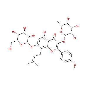CC1C(C(C(C(O1)OC2=C(OC3=C(C2=O)C(=CC(=C3CC=C(C)C)OC4C(C<br />(C(C(O4)CO)O)O)O)O)C5=CC=C(C=C5)OC)O)O)O