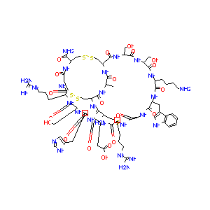 CC1C(=O)NC2CSSCC(NC(=O)C3CSSCC(C(=O)N1)NC(=O)C(CSSCC(C(<br />=O)NC(C(=O)NC(C(=O)NC(C(=O)NC(C(=O)NC(C(=O)N3)CCCNC(=N)<br />N)CO)CC4=CN=CN4)CC(=O)O)CCCNC(=N)N)NC(=O)C(NC(=O)C(NC(=<br />O)C(NC(=O)C(NC2=O)CO)CO)CCCCN)CC5=CNC6=CC=CC=C65)N)C(=O<br />)N