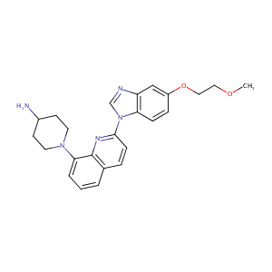 InChI=1S/C24H27N5O2/c1-30-13-14-31-19-6-7-21-20(15-19)26-16-29(21)23-8-5-17-3-2-4-22(24(17)27-23)28-11-9-18(25)10-12-28/h2-8,15-16,18H,9-14,25H2,1H3