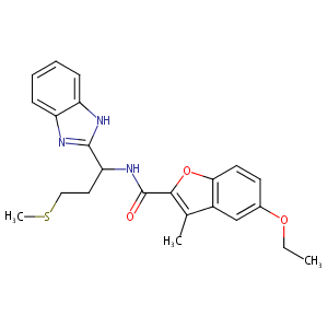 InChI=1S/C23H25N3O3S/c1-4-28-15-9-10-20-16(13-15)14(2)21(29-20)23(27)26-19(11-12-30-3)22-24-17-7-5-6-8-18(17)25-22/h5-10,13,19H,4,11-12H2,1-3H3,(H,24,25)(H,26,27)
