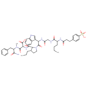 N1(C(=O)C(c2c[nH]c3c2cccc3)NC(=O)CNC(=O)C(NC(=O)CCc2ccc<br />(S(=O)(=O)O)cc2)CCCC)C(C(=O)NC(C(=O)N(C(C(=O)N)Cc2ccccc<br />2)C)C(=O)O)C(CC1)CCC