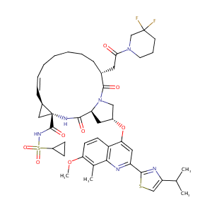 COc1ccc2c(O[C@@H]3C[C@@H]4N(C3)C(=O)[C@@H](CC(=O)N5CCCC<br />(F)(F)C5)CCCCC\\C=C/[C@@H]6C[C@]6(NC4=O)C(=O)NS(=O)(=O)<br />C7CC7)cc(nc2c1C)c8nc(cs8)C(C)C