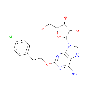 C1=CC(=CC=C1CCOC2=NC3=C(C(=N2)N)N=CN3C4C(C(C(O4)CO)O)O)<br />Cl