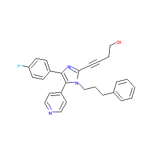 C1=CC=C(C=C1)CCCN2C(=NC(=C2C3=CC=NC=C3)C4=CC=C(C=C4)F)C<br />#CCCO