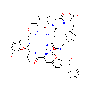 CCC(C)C(C(=O)NC(CC1=CN=CN1)C(=O)N2CCCC2C(=O)NC(CC3=CC=C<br />C=C3)C(=O)O)NC(=O)C(CC4=CC=C(C=C4)O)NC(=O)C(C(C)C)NC(=O<br />)C(CC5=CC=C(C=C5)C(=O)C6=CC=CC=C6)NC(=O)CNC