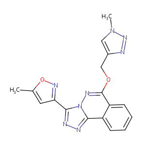 InChI=1S/C17H14N8O2/c1-10-7-14(22-27-10)16-20-19-15-12-5-3-4-6-13(12)17(21-25(15)16)26-9-11-8-24(2)23-18-11/h3-8H,9H2,1-2H3