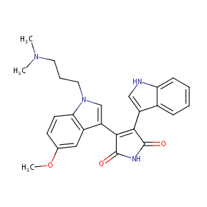InChI=1S/C26H26N4O3/c1-29(2)11-6-12-30-15-20(18-13-16(33-3)9-10-22(18)30)24-23(25(31)28-26(24)32)19-14-27-21-8-5-4-7-17(19)21/h4-5,7-10,13-15,27H,6,11-12H2,1-3H3,(H,28,31,32)
