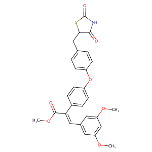 N1C(=O)SC(C1=O)Cc1ccc(Oc2ccc(/C(=C\c3cc(cc(c3)OC)OC)/C(<br />=O)OC)cc2)cc1