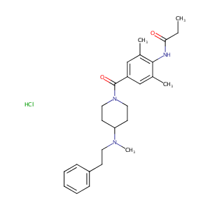 CCC(=O)NC1=C(C=C(C=C1C)C(=O)N2CCC(CC2)N(C)CCC3=CC=CC=C3<br />)C.Cl