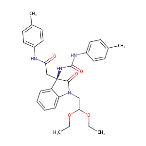 InChI=1S/C31H36N4O5/c1-5-39-28(40-6-2)20-35-26-10-8-7-9-25(26)31(29(35)37,19-27(36)32-23-15-11-21(3)12-16-23)34-30(38)33-24-17-13-22(4)14-18-24/h7-18,28H,5-6,19-20H2,1-4H3,(H,32,36)(H2,33,34,38)/t31-/m1/s1