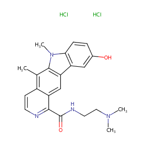 CC1=C2C(=CC3=C1C=CN=C3C(=O)NCCN(C)C)C4=C(N2C)C=CC(=C4)O<br />.Cl.Cl