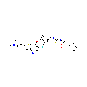 CN1C=C(N=C1)C2=CC3=NC=CC(=C3S2)OC4=C(C=C(C=C4)NC(=S)NC(<br />=O)CC5=CC=CC=C5)F