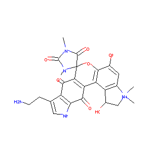 CN1C(=O)C2(C3=C(C4=C5C(C[N+](C5=CC(=C4O2)O)(C)C)O)C(=O)<br />C6=C(C3=O)C(=CN6)CCN)N(C1=O)C.[Cl-]