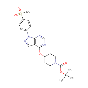 InChI=1S/C22H27N5O5S/c1-22(2,3)32-21(28)26-11-9-16(10-12-26)31-20-18-13-25-27(19(18)23-14-24-20)15-5-7-17(8-6-15)33(4,29)30/h5-8,13-14,16H,9-12H2,1-4H3