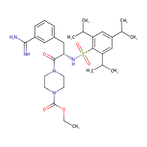 InChI=1S/C32H47N5O5S/c1-8-42-32(39)37-14-12-36(13-15-37)31(38)28(17-23-10-9-11-24(16-23)30(33)34)35-43(40,41)29-26(21(4)5)18-25(20(2)3)19-27(29)22(6)7/h9-11,16,18-22,28,35H,8,12-15,17H2,1-7H3,(H3,33,34)/t28-/m0/s1