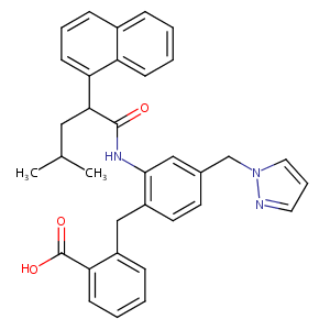 InChI=1S/C34H33N3O3/c1-23(2)19-31(30-14-7-11-25-9-3-5-12-28(25)30)33(38)36-32-20-24(22-37-18-8-17-35-37)15-16-27(32)21-26-10-4-6-13-29(26)34(39)40/h3-18,20,23,31H,19,21-22H2,1-2H3,(H,36,38)(H,39,40)