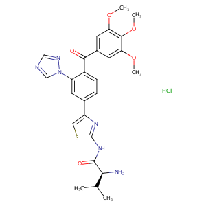 c1(nc(cs1)c1cc(c(C(=O)c2cc(c(c(c2)OC)OC)OC)cc1)n1ncnc1)<br />NC(=O)[C@@H](N)C(C)C.Cl