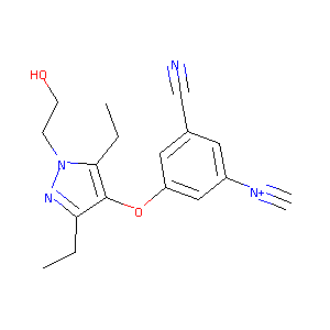 CCC1=C(C(=NN1CCO)CC)OC2=CC(=CC(=C2)[N+]#C)C#N
