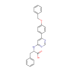 InChI=1S/C26H23N3O3/c30-26(31)24(15-19-7-3-1-4-8-19)29-25-16-23(27-18-28-25)21-11-13-22(14-12-21)32-17-20-9-5-2-6-10-20/h1-14,16,18,24H,15,17H2,(H,30,31)(H,27,28,29)/t24-/m0/s1