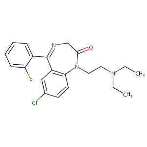 InChI=1S/C21H23ClFN3O/c1-3-25(4-2)11-12-26-19-10-9-15(22)13-17(19)21(24-14-20(26)27)16-7-5-6-8-18(16)23/h5-10,13H,3-4,11-12,14H2,1-2H3