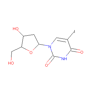 Antizona; Dendrid; Emanil; Heratil; Herpesil; Herpid; Herpidu; Herplex; IDU; IDUR; IUDR; IdUrd; Idexur; Idossuridina; Idoxene; Idoxuridin; Idoxuridina; Idoxuridinum; Iducher; Idulea; Iduoculos; Iduridin; Iduviran; Iododeoxyridine; Iododeoxyuridine; Iodoxuridine; Joddeoxiuridin; Kerecid; Kerecide; Ophthalmadine; Spectanefran; Stoxil; Synmiol; Virudox; Herplex liquifilm; Idossuridina [DCIT]; Idu Oculos; Allergan 201; Allergan 211; ID2; LT00440811; SKF 14287; Allergan-211; Dendrid (TN); HERPLEX (TN); Herpe-Gel; Herpes-Gel; Idoxuridina [INN-Spanish]; Idoxuridinum [INN-Latin]; Iododeoxyuridine-125I; Oftan-IDU; SK&F 14287; SK&F-14287; Idoxuridine (JP15/USP/INN); Idoxuridine [USAN:INN:BAN:JAN]; (+)-5-Iodo-2'-deoxyuridine; 1-(2-Deoxy-beta-D-ribofuranosyl)-5-iodouracil; 1-(2-deoxypentofuranosyl)-4-hydroxy-5-iodopyrimidin-2(1H)-one; 1-(2-deoxypentofuranosyl)-5-iodopyrimidine-2,4(1h,3h)-dione; 1-(4-Hydroxy-5-hydroxymethyltetrahydrofuran-2-yl)-5-iodo-1H-pyrimidine-2,4-dione; 1-[(2R,4R,5R)-4-hydroxy-5-(hydroxymethyl)oxolan-2-yl]-5-iodopyrimidine-2,4-dione; 1-[(2R,4R,5S)-4-hydroxy-5-(hydroxymethyl)oxolan-2-yl]-5-iodopyrimidine-2,4-dione; 1-[(2R,4S,5R)-4-hydroxy-5-(hydroxymethyl)oxolan-2-yl]-5-iodopyrimidine-2,4-dione; 1-[(2R,4S,5S)-4-hydroxy-5-(hydroxymethyl)oxolan-2-yl]-5-iodopyrimidine-2,4-dione;1-[(2R,5R)-4-hydroxy-5-(hydroxymethyl)oxolan-2-yl]-5-iodopyrimidine-2,4-dione; 1-[(2S,4R,5S)-4-hydroxy-5-(hydroxymethyl)oxolan-2-yl]-5-iodopyrimidine-2,4-dione; 1-[(2S,4S,5R)-4-hydroxy-5-(hydroxymethyl)oxolan-2-yl]-5-iodopyrimidine-2,4-dione; 1-[(2S,4S,5S)-4-hydroxy-5-(hydroxymethyl)oxolan-2-yl]-5-iodopyrimidine-2,4-dione; 1-[4-hydroxy-5-(hydroxymethyl)oxolan-2-yl]-5-iodopyrimidine-2,4-dione; 1-beta-D-2'-Deoxyribofuranosyl-5-iodouracil; 1.beta.-D-2'-Deoxyribofuranosyl-5-iodouracil; 1beta-D-2'-Deoxyribofuranosyl-5-iodouracil; 2'-Deoxy-5-(iodo-125I)uridine; 2'-Deoxy-5-iodouridine; 2'-deoxy-5-(125i)iodouridine; 5-(125-I)-Iodo-2-deoxyuridine; 5-I-2'-dUrd; 5-IUDR; 5-Iodo-2'-deoxyuridine; 5-Iododeoxyuridine; 5-Iododesoxyuridine; 5-Iodouracil deoxyriboside; 5IUDR; 5IdU