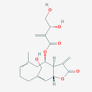 1S/C20H26O7/c1-11-5-4-6-14(9-21)8-17-18(13(3)20(25)27-17)16(7-11)26-19(24)12(2)15(23)10-22/h5,8,15-18,21-23H,2-4,6-7,9-10H2,1H3/b11-5+,14-8-/t15?,16-,17+,18+/m0/s1