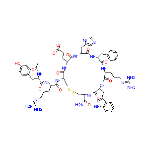 CC(=O)NC(CC1=CC=C(C=C1)O)C(=O)NC(CCCN=C(N)N)C(=O)NC2CSS<br />CC(NC(=O)C(NC(=O)C(NC(=O)C(NC(=O)C(NC(=O)C(NC2=O)CCC(=O<br />)O)CC3=CN=CN3)CC4=CC=CC=C4)CCCN=C(N)N)CC5=CNC6=CC=CC=C6<br />5)C(=O)N