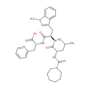 InChI=1S/C33H44N6O5/c1-22(2)18-26(37-33(44)39-16-10-4-5-11-17-39)30(40)35-27(19-23-21-38(3)29-14-7-6-13-25(23)29)31(41)36-28(32(42)43)20-24-12-8-9-15-34-24/h6-9,12-15,21-22,26-28H,4-5,10-11,16-20H2,1-3H3,(H,35,40)(H,36,41)(H,37,44)(H,42,43)/t26-,27+,28+/m0/s1