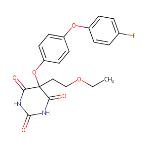 InChI=1S/C20H19FN2O6/c1-2-27-12-11-20(17(24)22-19(26)23-18(20)25)29-16-9-7-15(8-10-16)28-14-5-3-13(21)4-6-14/h3-10H,2,11-12H2,1H3,(H2,22,23,24,25,26)