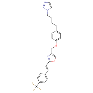 InChI=1S/C25H23F3N4O2/c26-25(27,28)21-9-4-20(5-10-21)8-13-24-30-22(18-34-24)17-33-23-11-6-19(7-12-23)3-1-2-15-32-16-14-29-31-32/h4-14,16,18H,1-3,15,17H2/b13-8+