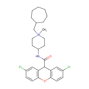 InChI=1S/C28H34Cl2N2O2/c1-32(18-19-6-4-2-3-5-7-19)14-12-22(13-15-32)31-28(33)27-23-16-20(29)8-10-25(23)34-26-11-9-21(30)17-24(26)27/h8-11,16-17,19,22,27H,2-7,12-15,18H2,1H3/p+1