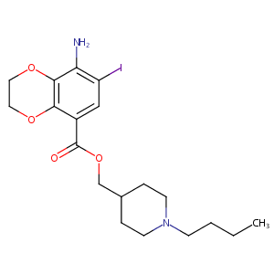 InChI=1S/C19H27IN2O4/c1-2-3-6-22-7-4-13(5-8-22)12-26-19(23)14-11-15(20)16(21)18-17(14)24-9-10-25-18/h11,13H,2-10,12,21H2,1H3