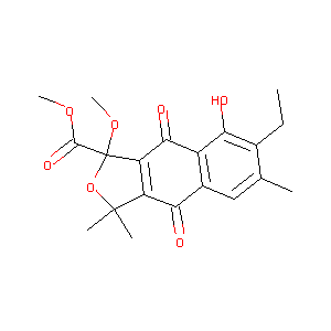 CCC1=C(C=C2C(=C1O)C(=O)C3=C(C2=O)C(OC3(C(=O)OC)OC)(C)C)<br />C
