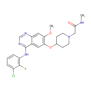 InChI=1S/C23H25ClFN5O3/c1-26-21(31)12-30-8-6-14(7-9-30)33-20-10-15-18(11-19(20)32-2)27-13-28-23(15)29-17-5-3-4-16(24)22(17)25/h3-5,10-11,13-14H,6-9,12H2,1-2H3,(H,26,31)(H,27,28,29)