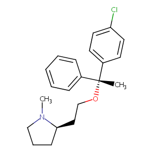 InChI=1S/C21H26ClNO/c1-21(17-7-4-3-5-8-17,18-10-12-19(22)13-11-18)24-16-14-20-9-6-15-23(20)2/h3-5,7-8,10-13,20H,6,9,14-16H2,1-2H3/t20-,21-/m1/s1