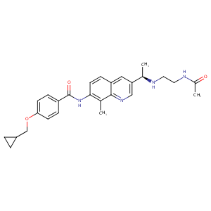 InChI=1S/C27H32N4O3/c1-17-25(31-27(33)21-6-9-24(10-7-21)34-16-20-4-5-20)11-8-22-14-23(15-30-26(17)22)18(2)28-12-13-29-19(3)32/h6-11,14-15,18,20,28H,4-5,12-13,16H2,1-3H3,(H,29,32)(H,31,33)/t18-/m1/s1