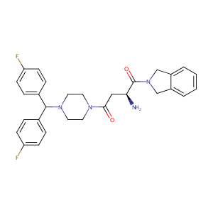 InChI=1S/C29H30F2N4O2/c30-24-9-5-20(6-10-24)28(21-7-11-25(31)12-8-21)34-15-13-33(14-16-34)27(36)17-26(32)29(37)35-18-22-3-1-2-4-23(22)19-35/h1-12,26,28H,13-19,32H2/t26-/m0/s1