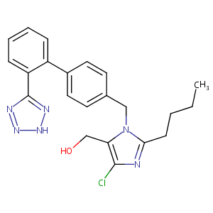 Cozaar; Hyzaar; Lortaan; Losartic; LOSARTAN POTASSIUM; Losartan monopotassium salt; CL23623; DUP 89; MK954; Cozaar (TN); DuP-753; Losartan (INN); Losartan [INN:BAN]; Losartic (TN); MK-954; [2-butyl-5-chloro-3-[[4-[2-(2H-tetrazol-5-yl)phenyl]phenyl]methyl]imidazol-4-yl]methanol; (2-butyl-4-chloro-1-{[2'-(1H-tetrazol-5-yl)[1,1'-biphenyl]-4-yl]methyl}-1H-imidazol-5-yl)methanol; (2-butyl-4-chloro-1-{[2'-(1H-tetrazol-5-yl)biphenyl-4-yl]methyl}-1H-imidazol-5-yl)methanol; 1H-Imidazole-5-methanol, 2-butyl-4-chloro-1-[[2'-(1H-tetrazol-5-yl)[1,1'-biphenyl]-4-yl]methyl]-(9CI); 2-Butyl-4-chloro-1-((2'-(1H-etrazol-5-yl) (1,1'-biphenyl)-4-yl)methyl)-1H-imidazole-5-methanol; 2-Butyl-4-chloro-1-[[2'-(1H-tetrazol-5-yl)[1,1'-biphenyl]-4-yl]methyl-1H-imidazole-5-methanol; 2-butyl-4-chloro-1-[p-(o-1H-tetrazol-5ylphenyl)benzyl]imidazole-5-methanol; 2-n-butyl-4-chloro-5-hydroxymethyl-1-[(2'-(1H-tetrazol-5-yl)biphenyl-4-yl)methyl]imidazole; 2-n-butyl-4-chloro-5-hydroxymethyl-1-[[2'-(1H-tetrazol-5-yl)-biphenyl-4-yl]methyl]imidazole