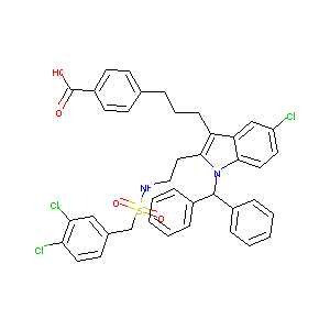 C1=CC=C(C=C1)C(C2=CC=CC=C2)N3C4=C(C=C(C=C4)Cl)C(=C3CCNS<br />(=O)(=O)CC5=CC(=C(C=C5)Cl)Cl)CCCC6=CC=C(C=C6)C(=O)O