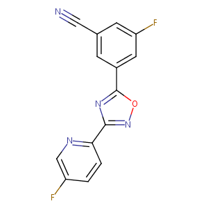 InChI=1S/C14H6F2N4O/c15-10-1-2-12(18-7-10)13-19-14(21-20-13)9-3-8(6-17)4-11(16)5-9/h1-5,7H