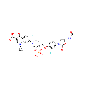 CC(=O)NCC1CN(C(=O)O1)C2=CC(=C(C=C2)OCC3(CCN(CC3)C4=C(C=<br />C5C(=C4)N(C=C(C5=O)C(=O)O)C6CC6)F)OP(=O)(O)[O-])F.[Na+]