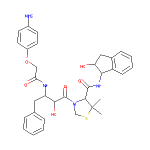 CC1(C(N(CS1)C(=O)C(C(CC2=CC=CC=C2)NC(=O)COC3=CC=C(C=C3)<br />N)O)C(=O)NC4C(CC5=CC=CC=C45)O)C