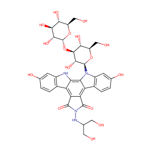 n1(c(=O)c2c(c1=O)c1c(n([C@H]3[C@@H]([C@@H](O[C@@H]4[C@@<br />H]([C@H]([C@@H]([C@H](O4)CO)O)O)O)[C@@H]([C@H](O3)CO)O)<br />O)c3c1ccc(c3)O)c1c2c2c([nH]1)cc(cc2)O)NC(CO)CO