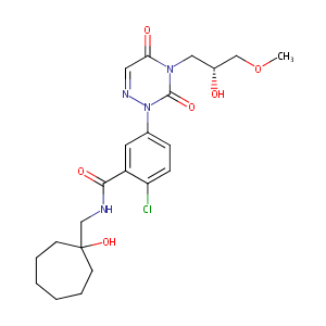 C1CCCCC(C1)(O)CNC(=O)c1c(ccc(c1)n1ncc(=O)n(c1=O)C[C@H](<br />COC)O)Cl