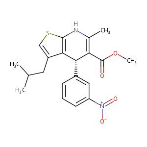 c12c([C@H](C(=C(N1)C)C(=O)OC)c1cc([N+](=O)[O-])ccc1)c(c<br />s2)CC(C)C