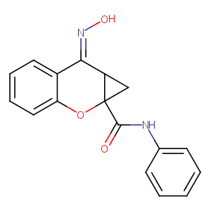 InChI=1S/C17H14N2O3/c20-16(18-11-6-2-1-3-7-11)17-10-13(17)15(19-21)12-8-4-5-9-14(12)22-17/h1-9,13,21H,10H2,(H,18,20)/b19-15-